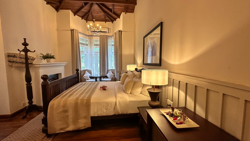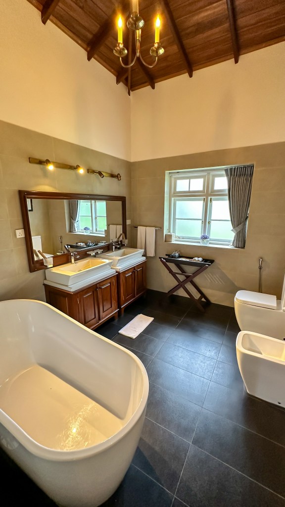 We received a warm welcome from Nayanajith when we arrived at the Lavender House, and the villa is wonderfully nestled amidst lush tea estates, as I mentioned earlier. The pool area offers a stunning view, and during our visit in October, the weather was surprisingly not too cold. Even though it rained in the evening, it added an extra layer of beauty to the property, seamlessly blending with the overall atmosphere.